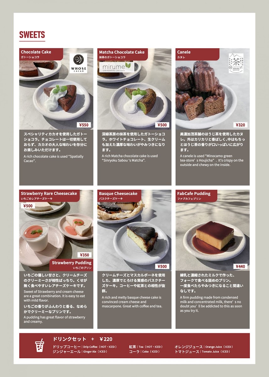 Fab Cafe Nagoya Menu
